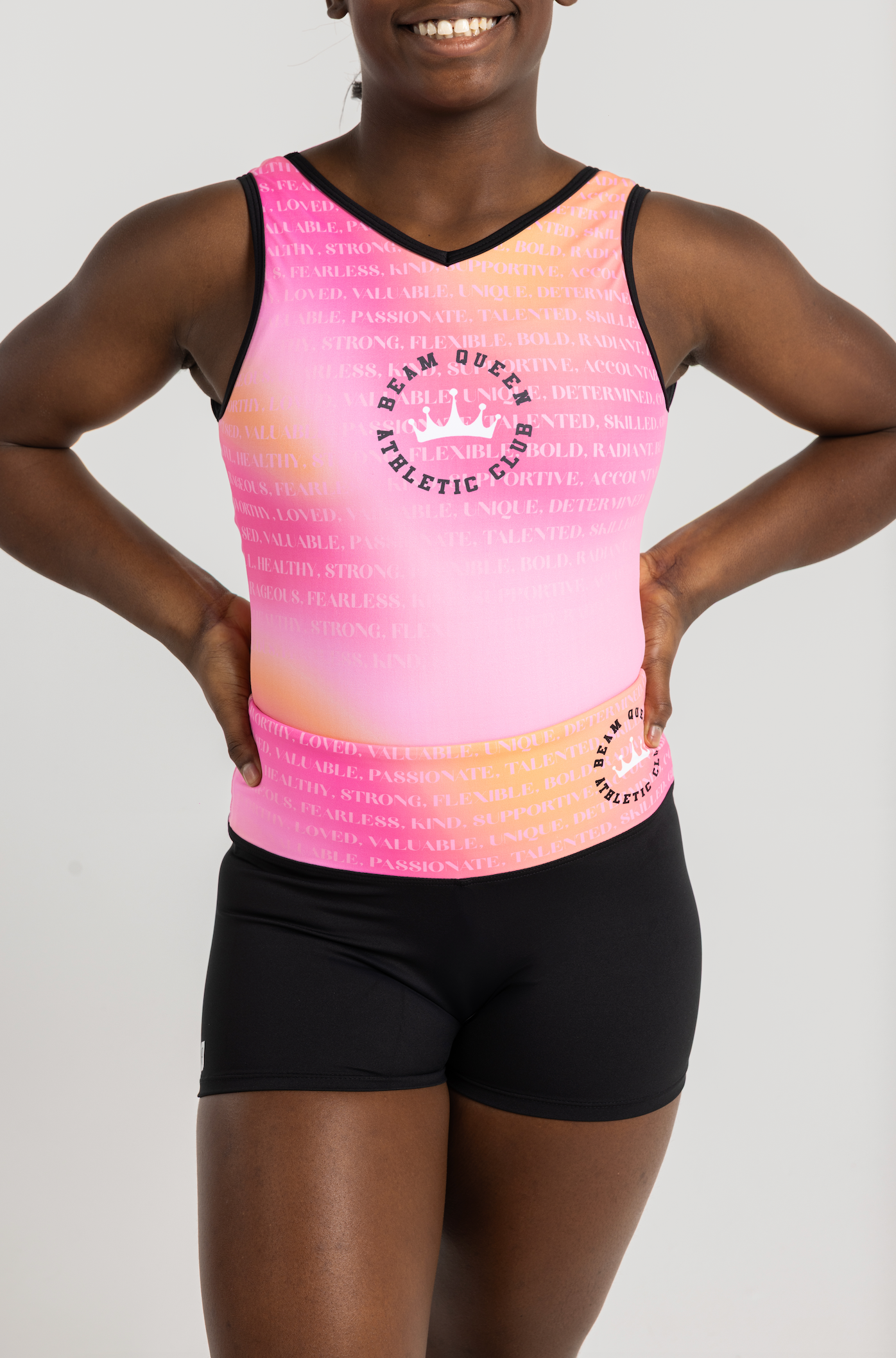 The Queen Aura Leotard by Sylvia P was designed as a reminder to every gymnast that they can achieve anything they set their mind to. It is filled with hidden affirmations to remind gymnasts just how strong, courageous and unique they are!