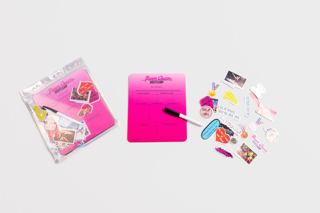 This vision board pack comes with a black dry erase marker and motivational stickers