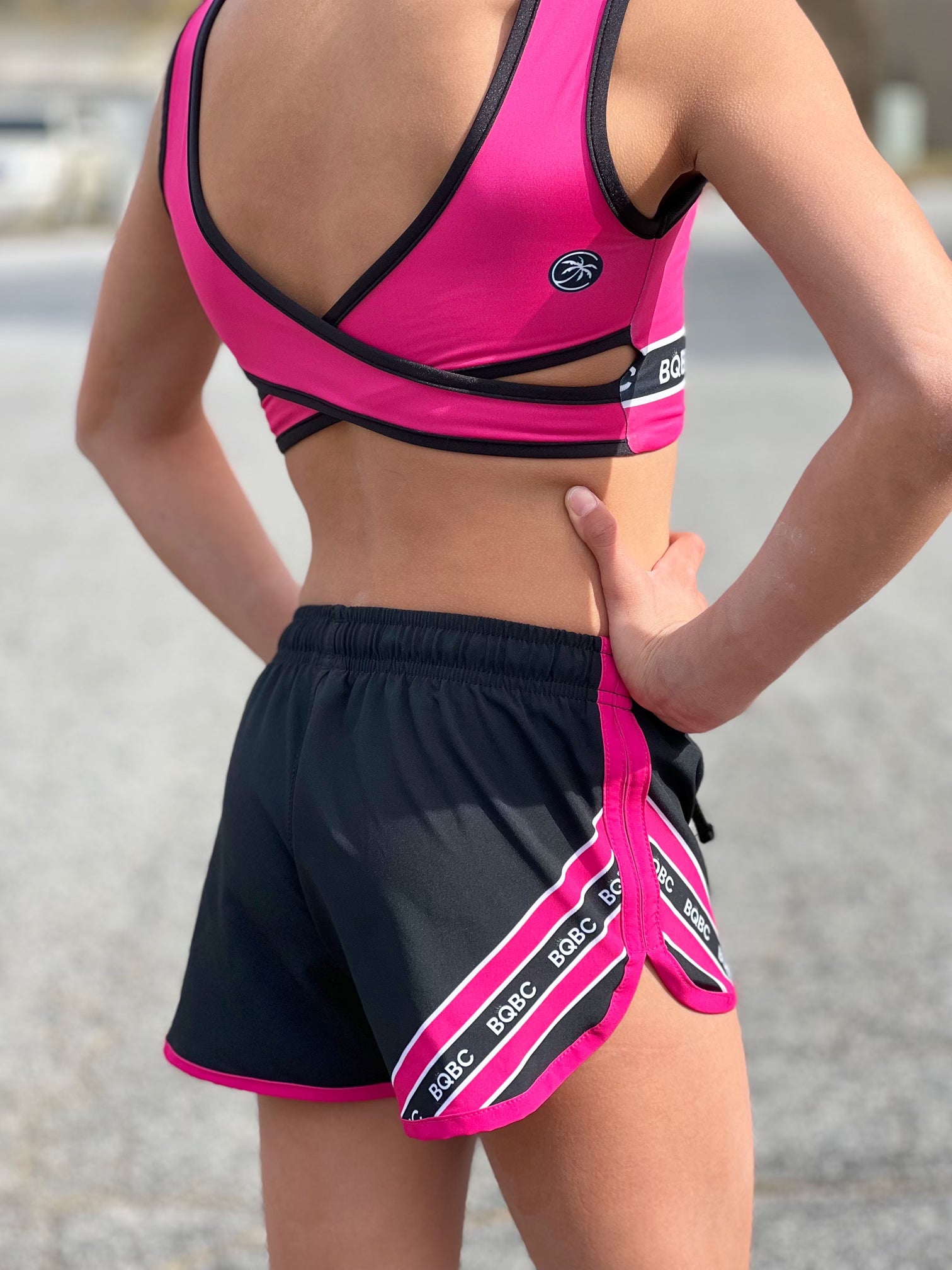 The CocoVida track short is perfect for summer! It has a stretch micro fiber fabric, drawstring waist band and BQBC details on both sides! Stretch micro fiber fabric for the shorts